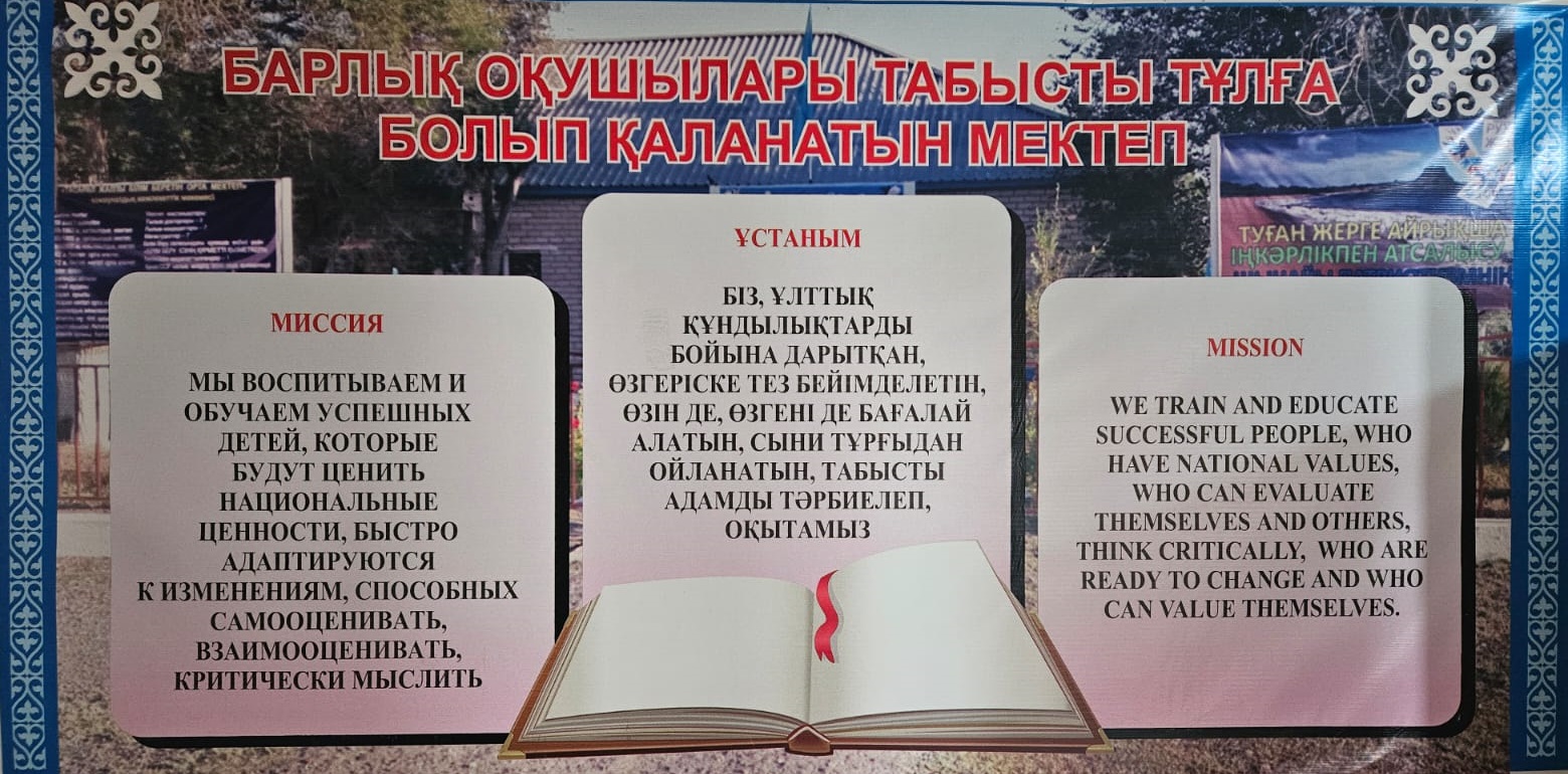 Мы воспитываем и обучаем успешных детей, которые будут ценить национальные ценности, быстро адаптируются к изменениям, способных самооценивать, взаимооценивать, критически мыслить